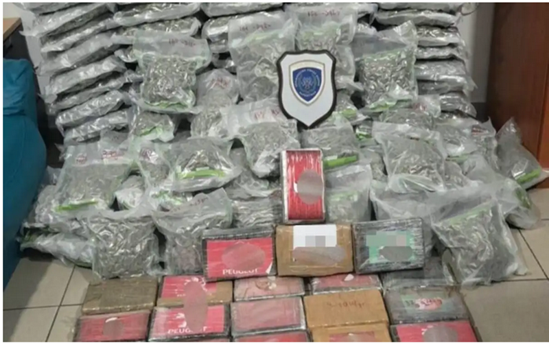 Σε έλεγχο που ακολούθησε στον χώρο του φορτίου, εντοπίστηκαν 163 πλαστικές συσκευασίες με ακατέργαστη κάνναβη υδροπονικής καλλιέργειας, συνολικού μικτού βάρους 133 κιλών και 669 γραμμαρίων, καθώς και 20 πλαστικές συσκευασίες που περιείχαν κοκαΐνη, συνολικού μικτού βάρους 21 κιλών και 942 γραμμαρίων.