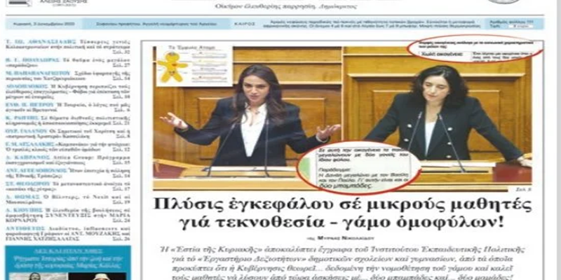 Και τούτο διότι το πρόγραμμα του Ινστιτούτου Εκπαιδευτικής Πολιτικής αναφέρεται σε «κοινωνικά φύλα» και «διαμόρφωση» σεξουαλικής ταυτότητος.